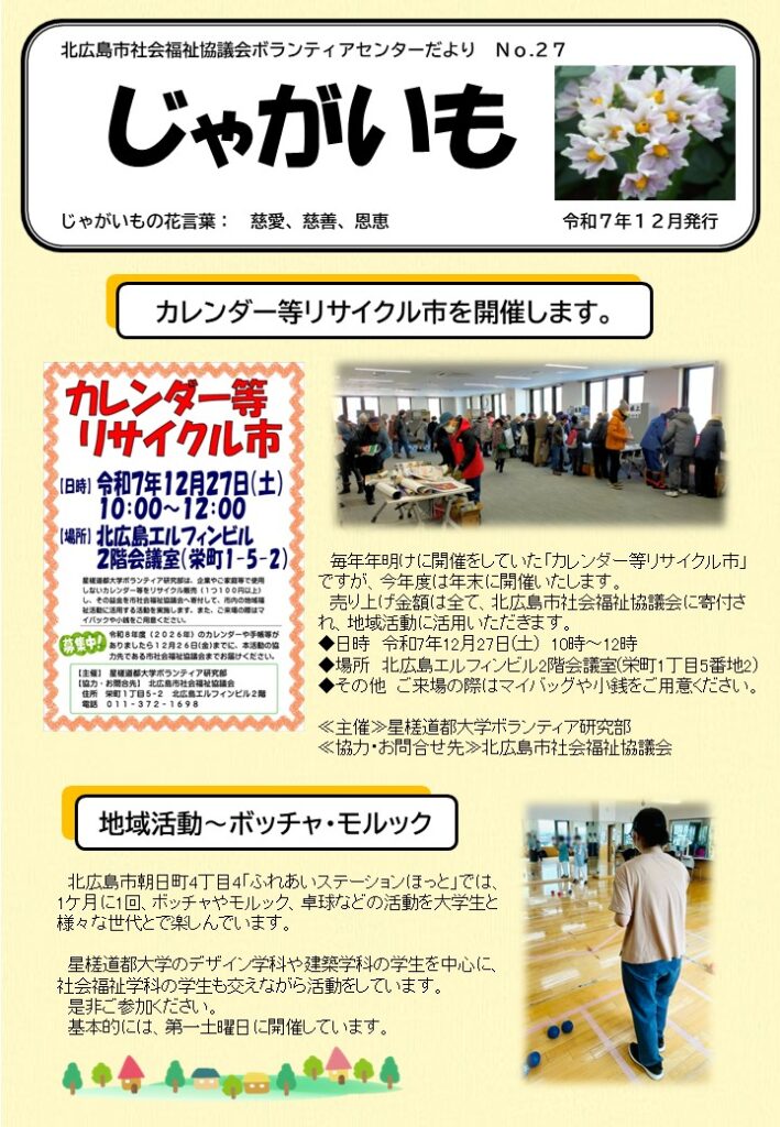 ボランティアセンターだより「じゃがいも」27号を令和7年12月に発行いたしました。