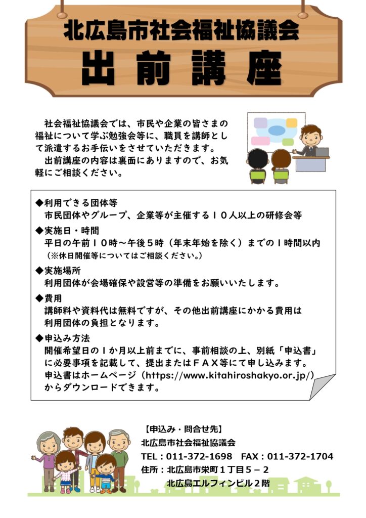 • 講師料や資料代は無料ですが、その他出前講座に係る費用は利用団体の負担となります。
